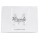 Personlig Bridesmaids Gifts har personlig bridesmaid's namn i grått Classic script font stil och monogram i light grått Classic serif font stil som bakgrund med rubrik och bröllop date i grått Classic serif font stil på vit bakgrund. Även perfekt för maid of honor, blomsterflicka, budens mamma med mera.