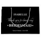 Personlig BRIDESMAID-presentpåse med en svart och vit färg-palett. Mallen namn är konfigurerad för redo så att du kan lägga till namn och briden & gruppens namn och bröllop. Tack för att ni skrev: "Tack för att ni är min brud" i en blandning av skript för elegant och stark, djärv typografi. Om du vill ha en annan bakgrund i färg klickar du på "anpassa" för att ange designen verktyg och ändra den, eller känner dig fri att meddela oss om hjälp. Bläddra i vår butik efter alternativ färg och storlek.