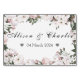 Styr dina gäster med elegans och charm med det här bröllop-kortet för personlig. Med ett vackert gräns av illustrationer av mjuk rosa och vit blommigt belyser detta kort namn av paret lycklig, "Alison & Charlie", och deras speciella datum, "04 mars 2024", i ett klassiskt skript. Perfekt för att lägga till en personlig till ditt bord för bröllopsmottagning eller som en chic för en möhippa eller årsdag firande.