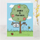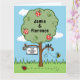 Ett sött hälsning-kort för att fira bröllop, som kan vara personlig. Kortet har en färgstark trädgårdsscen med ett äpple träd, en stötfångare som går runt och en skrapning av en skal av nyckelfåglar på marken.