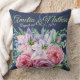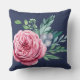Personlig fet blå, marin engrammad dekorativ kudde med vattenfärgad blomma bouquet, med datum namn och bröllop. Underbar påverkan på ditt sovrum eller vardagsrum. Anpassa med bakgrundsversionen färg, bröllop, namn och monogram som startdatum.