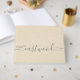 Ett modernt och elegant minimalistiskt pars namn-monogram i vintage serif-typ, kontrasterat med ett handskrivet stil-swash-skript på en gräddfaux linen-effektbakgrund. Elegant bröllop gäst bok för nyfödda. Blanda vintage och modernt stilar.