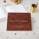 Ett enkelt elegant pars bröllop namn monogram med datum och plats, på en bruna färgad faux-effektbakgrund. Enkel klassisk elegans. Bröllop gäst undertecknar keepsaké bok. Elegant gammal serif-typ som är modellerad på Roman engrave stil, med skriptampersand.