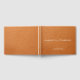 Ett enkelt elegant pars bröllop namn monogram med datum och plats, på en färgad för lädereffektbakgrund. Enkel klassisk elegans. Bröllop gäst undertecknar keepsaké bok. Elegant gammal serif-typ som är modellerad på Roman engrave stil, med skriptampersand.