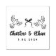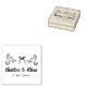 Ett vackert utformat gummi frimärke med två eleganter med ett band som symboliserar kärlek och enighet. Perfekt för anpassning av bröllopsinbjudningar, kuvert, tackkort och kontorsmaterial. Anpassa med namn och bröllop-datumet om du vill skapa en tidlös nyckelroll som tillför en meningsfull beröring till din speciella dag.