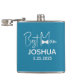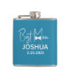 Personlig bröllopsflaska töstvänner present som kan anpassas med töstvännens namn samt bröllopsdatum. Den dammiga blå flaskan har en elegant, modernt skriptdesign med en slips-grafik. En fin present för brudgummen att ge sin töstvän.