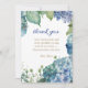 Personlig Bröllopsfest Blå Hortensia Tack Kort
