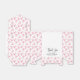 Personliga presentförpackningar för bröllopsfest med rosa band coquette. Ett mönster med rosa band överallt. Framsidan innehåller texten "Tack" i en handskriven kalligrafisk stil. Anpassa mallen med din evenemangstitel och datum. © Kimbellished, LLC