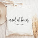 Denna enkla och eleganta shoppingväska har orden "brudtjänst" i kolgrå handskriven text. Anpassa den med hennes namn i sans serif-teckensnitt. Gör en perfekt brudtjejpresent!
