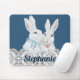Unik, söt och elegant! En musmatta för vilken kanin som helst älskare, och det är personlig! Lägg till ett namn i det här söta mönster som innehåller ett par romantiska vita knivar som tittar över en lacy-kant. Bakgrunden är blå. Ditt namn visas i en mörkblå färg i ett söt kursivt teckensnitt. - enkelt att anpassa med hjälp av textmallen och redigera-menyn. Originalgrafik och design av Tuzi Williams.