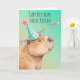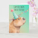 Skicka födelsedagsönskemål med en nypa sällsam charm! Detta personliga födelsedagskort med kapybara visar internetets favoritvarelse i festhumör - perfekt för djurälskare, memefans eller alla som uppskattar en avspänd fest. Om din kapybara nu har på sig en festhatt, blötlägger sig i ett badkar eller bara är bedårande lugn, detta kort ger en lekfull twist till vilken födelsedag som helst. Anpassa med mottagarens namn och meddelande på insidan för att göra det verkligen unikt. Det är det ultimata sättet att säga "Grattis på födelsedagen!" med personlighet och positivitet!