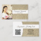 Ett faux subtle guld glitter sätter av bakgrunden till affärskortet med en platshållare för foto på den lämnat med mallen namn och rubrik på högerna. Baksidan innehåller en samordnad utformning och färg med text fält för ockupationen eller affärsverksamheten namn och detaljer. Byt ut platshållarfotot med lodräts formatfoto och QR-koden på baksidan med din. Fyll i fälten eller klicka på anpassa för att välja det teckensnitt som du vill använda stil, storlekt och färg.