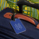 Blue Luggage Tag med klassisk design. Du kan personlig märkrns fram- och baksida.