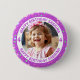 Ett sött foto av personligen, namn och födelsedagsknapp för en liten flicka, Background har rosa and lila Conetti. Lägg till all information och alla foton i området Anpassa. Tur för vänner och familj till bära vid en födelsedagsfest för barn!