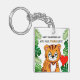 Roligten "DU ÄR TIGER-RIFIC" för barn i valentines day-nyckelringen, med en tecknad tiger som håller en röd hjärtballong omgiven av djungelblad, kan nyckelringens baksida vara personlig med mallmeddelandet eller skrivan själv. Teckensnittet stilar, storlek och färg kan ändras genom att klicka på den anpassade länken efter anpassning.