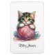 Ta med dig charm och färdighet till kylskåpet, skåpet eller kontorsutrymmet med denna snygga 4-tums x 6-tums flexibla fotomagnet! Med en oemotståndligt söt kattunge med stort blått ögon som är kapslad mot en rosa boll av garn är denna söta utformning perfekt för både kattälskare, djurentusiaster och garnhantare. Lätt och tåligt, det är en underbar liten accent för vilken metall som helst yta och gör en liten handfull gåva eller stuffare! Anpassa med egen namn eller egen fras, eller ta bara bort om du bara vill ha bilden av katten.