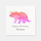 Anpassa våra rosa triceratops dinosaur napkins med ditt barns namn för deras dinosaurifödelsedagsfest.