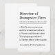 En sarksatisk ”direktör för soptränskador” design skämtsamt firar chefer som utmärker sig i att hantera arbetsplatskaos och katastrofer. Den lättsamma gåvan erkänner deras stresshanteringsfärdigheter och förmåga att förvandla problem till lärorika upplevelser, vilket gör det perfekt för olika kontorstillfällen.