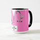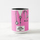 Kreativets doktor uppskattning, födelsedag, studenten eller helgdag gåva mugg med rosa sjukhusskrubbar och lustig schweizisk armé knivar. Så här anpassar du redigeringstexten för att lägga till namn.