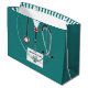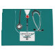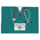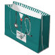 Kreativets medicinska skolväska i studenten för presentväska till doktor student med sjukhusskrubbar och stetoskop. Redigera text för att lägga till doktor, läkarassistent eller sjuksköterskas namn och medicinska referenser.
