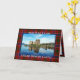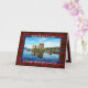 Eilean Donan slott, som ligger i de västra högländerna i Skottland, var hem för de allierade klanerna MacRae och MacKenzie under många århundraden. Den sistnämnda ägde egendomen från omkring 1297. Genom århundradena skyddade, förvaltade och köpte så småningom MacRae-klanen Eilean Donan slott, som nu är en del av Kintail National Scenic Area, en av 40 i Skottland. Strukturen byggdes helt om mellan 1919 och 1932. Denna design visar ett praktfullt blått foto av Eilean Donan slott, infattat i rikt blå färg och omgivet av den välbekanta gamla röda tartanen. I blekblå bokstäver står "Eilean Donan slott" och "MacRae klan" högst upp och längst ner. Eilean Donan är öppet för allmänheten. Denna mångsidiga design uppmuntrar dig att använda stavningen av din egen gren av den skotska klanen, att lägga till en liten gren av järnek och en julhälsning eller vad din fantasi än drömmer upp för att göra denna familjeärvda design unikt DIN under vilken årstid eller tillfälle som helst. Kanske har DIN familj stavat “McCray” i hundratals år. Använd bara den stavningen. Du är