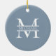 Personlig Elegant Dusty Blue Monogram och Namn Julgransprydnad Keramik