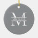 Personlig Elegant Grått Monogram och Namn Julgransprydnad Keramik