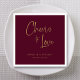 Lägg till lyxen och sofistikeringen till bröllopsmottagningen med vår personlig elegant guld-handstryck med bröllop blöjor. De här blöjorna har en vacker guld-handskriven fras "fuers to kärlek", liksom ditt datum namn och bröllop. Bakgrundsutformningen är perfekt för en rad olika teman i bröllop, och blöjorna är lämpliga för en mängd olika tillfälle, inklusive möhippor, förlovningar och andra speciella händelser. Funktioner: - Elegant guld-handskriven fras "cheers to kärlek" - Personlig med namn och bröllop-datum - Burgundy bakgrundsdesign färg - Passande för bröllop, möhippor, förlovningar och andra speciella evenemang - högkvalitativ 3-skiktskonstruktion för papper konstruktion - din personlig elegant guld-hand skrev bröllop napkins i dag och gör ett bestående intryck på dina gäster!