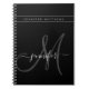 Personlig Elegant Script Grått Black Monogram Anteckningsbok