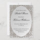 En snyggt, ett meddelande från silver möhippa med ett dekorativt silver snöre mönster kring anpassningsbarna i mitten av kortet. Den dekorativa ram finns också på andra sidan av kortet, med ett monogram för personlig i kortet tillsammans med uppgifter om OSAN. Just den här chicen och möhippan inbjudan, som har så stor elegant, ingår i en större kontorssvit, som också omfattar matchande bröllopsinbjudan, födelsedagsfest-meddelande, bröllopsfavors med mera, som du kan se här: https://www.zazzle.com/collections/elegant_metallic_silver_lace-119345864697786840