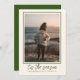 Dela din höststämning med vårt personliga, eleganta och snygga gröna julkort. Detta kort förkroppsligar en klassisk, minimalistisk modern design med en vacker familjeporträtt som mittpunkt. Med sin enkla en-fotograf-layout och rena, minimalistiska stil låter det dina julhälsningar lysa igenom på det mest eleganta sättet. Den handskrivna typsnittet ger en charmig och sofistikerad touch, perfekt för dem som älskar en balans mellan modern enkelhet och festlig värme.