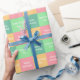 Detta är en geometrisk design med vackra nyanser av färg gult, grönt och rosa i elegantens torg tillsammans med upp till fyra typografi av anpassade fält, som för närvarande står "Grattis på födelsedagen!" och "Firar dig!" för önskningar, budskap, namn eller annan personalisering. Vare sig det är en födelsedag, nyfödd bebis, babydusch, bröllop, pension eller andra tillfälle, så tillför personligens presentemballerande papper elegans till dina speciella gåvor. Om du vill ha speciella förfrågningar eller frågor kontaktar du konstnären på wafadahdalcreates@gmail.com. © Wafa Y. Dahdal - Med förbehåll för alla Höger. WD Art