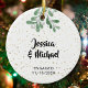 Fira din förlovning i julas med Julgran Ornament i eleganten. Det är dekorerat med vattenfärgsmistletoe och små guld-stjärnor. Enkelt anpassade.