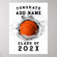 Unikt basket-temat gratulationsaffisch för basket senior night eller examensfest. För att anpassa, redigera texten för att lägga till basketspelarens namn och avgångsklassens år.