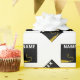Kreativt examenspresentpappersomslag med seniorklassens svarta och gyllene examensmössa designmönster. För att anpassa, redigera texten för att lägga till hans eller hennes namn och året.
