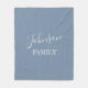 Utformning av snyggten med "FAMILY NAMN". Den här kombinationen av typografi i personlig erbjuds i vit typsnitt över en söt blå skugga, officiellt benämnd "Fästad Denim", som valts ut som en av de främsta färgerna för 2020...av experterna i färg. Lägg till ditt namn genom att följa länken "Anpassa den här mallen". Ytterligare textilier och storlekar finns tillgängliga.