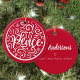Anpassa enkelt denna vackra hand med texten "Fred", julprydnad med din anpassningsbar familj namn på baksidan.