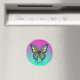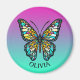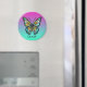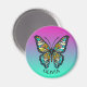 Personlig magnet med en söt färgad fjäril i lila, teal, blått och gult.