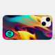 Personlig lås med flera färgader på svart bakgrund. Gult, teal, rosa.
