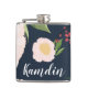 Personlig Flask Vita Blommigtar Blommor på Mörk Bl Fickplunta