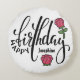 Fira en speciell dag med denna charmiga Personlig födelsedag Rosa ros Rund Kudd. Med elegant svart skrivstil typografi omgiven av vackra rosa ros illustrationer, erbjuder denna cirkulära kudde ett mjukt och stilrent sätt att önska "Grattis på födelsedagen" till en nära och kära. Perfekt som dekorativ accent för ett sovrum eller vardagsrum, kombinerar denna anpassade kastkudde blomsterprakt med personlig känsla för att skapa ett minnesvärt minne som lyser upp varje rum.