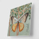 En känslig fjäril, som utvunnits i mjuka pastellhuvar, flyger mot bakgrunden av ett stort träd. Den här utformningen är inspirerad av det anmärkningsvärda faktum att vissa fjärilar kan migrera tusentals mil och firar naturens återhämtningsförmåga och skönhet. Smörflyget, en symbol för omvandling och hopp, förkroppsligar den känsliga balansen mellan bräcklighet och styrka. Träd, som är en stadig närvaro, representerar tillväxt och stabilitet och ger en känsla av jordning mitt i livets ständiga förändringar.