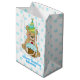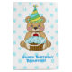 Denna är en gullig gåva hänger lös för en pys födelsedagsfest! Den presenterar en nalle som ha på sig en randig födelsedaghatt. Framme av björnen är en frostad muffin för blått med ett körsbär överst. För blått den beställnings- för text grattis på födelsedagen för något att säga för närvarande (ditt anpassningsbarnamn) bara du kan ändra den till något som du skulle något liknande. Bilder och texten förläggas på en ljus pastellfärgad blått, och vitpolkaen pricker bakgrund. Båda sidor av hänga lös har samma att avbilda. *Thanks till det verkliga avtalet Clipart för den van vid cliparten skapar denna design.