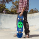 Visa dina drag på den här Grönten för Barnen Alien Personlig Kids-skateboard. Det är designat med en grönt främmande huvud som sticker ut tunga på mitten av anpassadets ljusblå bakgrund. Namn är i fetstil, vitt.. Det är en underbar presentidé för science fiction, rymden och UFO älskare. Klicka på Anpassa mall och ange namn.