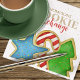En söt julkaka, perfekt anpassningsbar party, förser med vismisk vattenfärgscookie-design, med röd grönt blå kräm, en söt papper blöjor, perfekt för helgdag firande, med snyggt-kalligrafi, stollig typografi, underbar för all bakkokning firande, Julafton party deeller