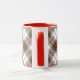 Den perfekta julplädet i röd, grön och vittartan på en mugg, som kan personifieras med ett namn, monogrammed, efternamn eller precis god jul, HO HO HO, glad helg och Fa-LaLa