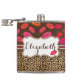 Flickaktigt flår leoparden tryckfläcken med läppar som kyssar i olikt skuggar av rött, rosa, purpurfärgat, orangen och gult med en bakgrund för mörkbruntläder. Ordna till för att personifiera och tillfoga något namn. Ändra precis Elizabeth till ditt namn. Fullständigt anpassade. Très chic och elegant.