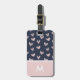 Anpassningsbar-designad bagagetagg med personlig monogram på modern rosa och marinhjärtan mönster på framsidan, din kontaktinformation på baksidan.
