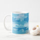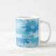 Tyck om att dricka din favorit- dryck med denna stilfulla kaffemuggpersonlig med ditt namn och en kamouflagedesign. Denna kamouflage är original- konst skuggar in av blått. Ett ljust - blåttremsan går ger ett område för att personifiera med ditt namn, monograminitialer eller annan ord av ditt primat liksom affärsnamn eller ordstäv. Denna roligt och trendigcamodesign är vid konstnären och tyg märkes- Phyllis Dobbs och är tillgängliga i röd ljus oliv grönt mörka oliv grönt och turkosblåttcamoen den rosor, på olika produkter för din njutning eller för underbara gåvor. Ha roligt med kamouflage! Fullständigt anpassade för monogrammärkning.