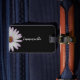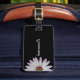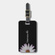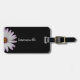 Lägg till ditt namn i anpassningsbarnas bagagemärke med en vacker vit daisy på en svart bakgrund